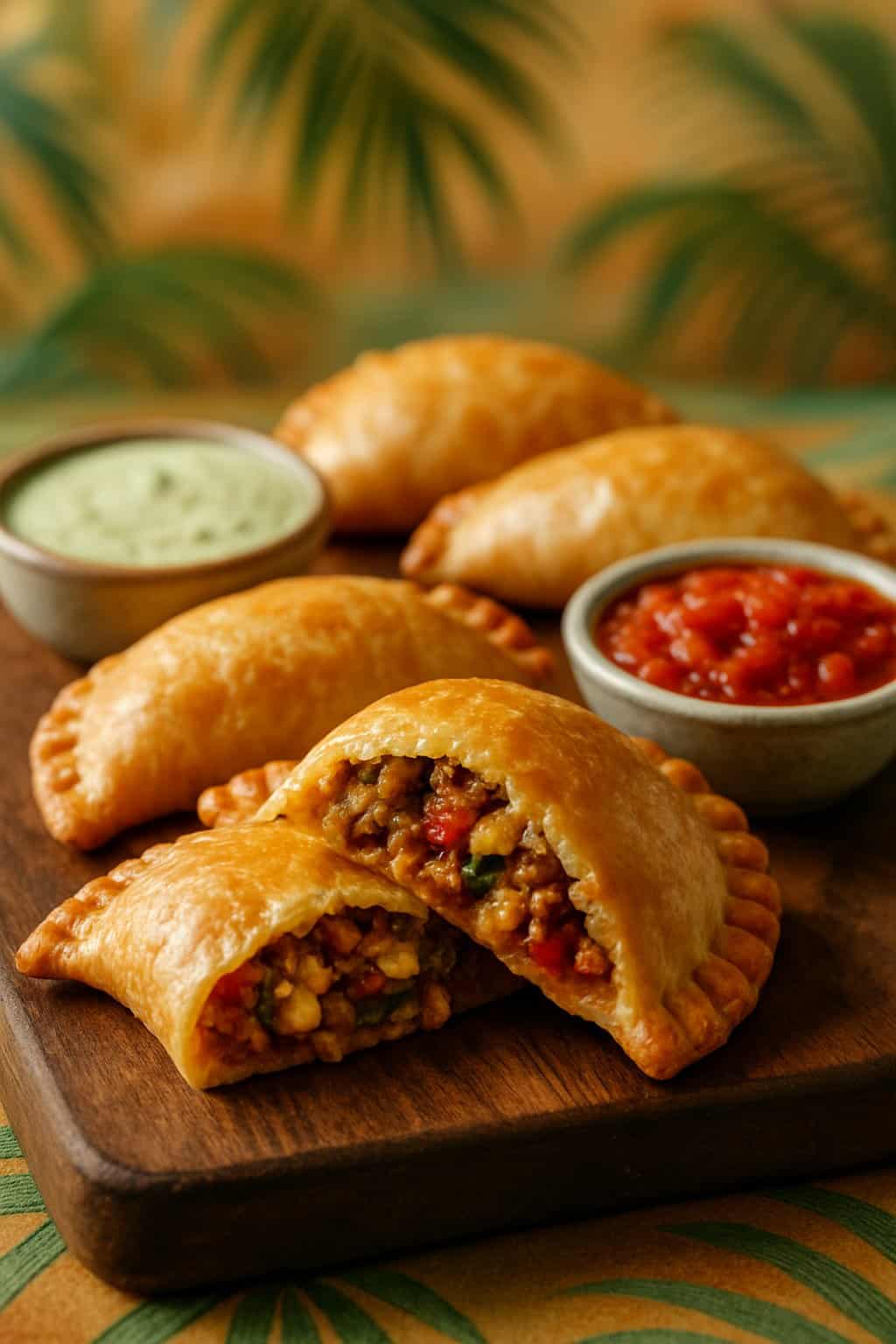 These empanadas bring the comfort of a Latin dish with a tropical twist. The flaky pastry holds a filling that balances spices, vegetables, and beef.