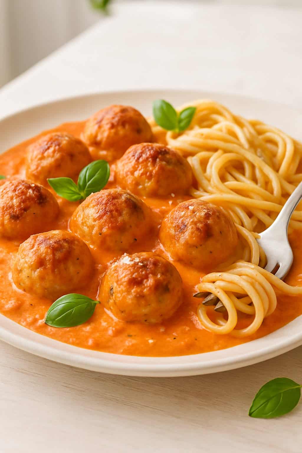 Why You Will Love Baked Mini Turkey Meatballs in a Creamy Tomato Sauce with Pasta