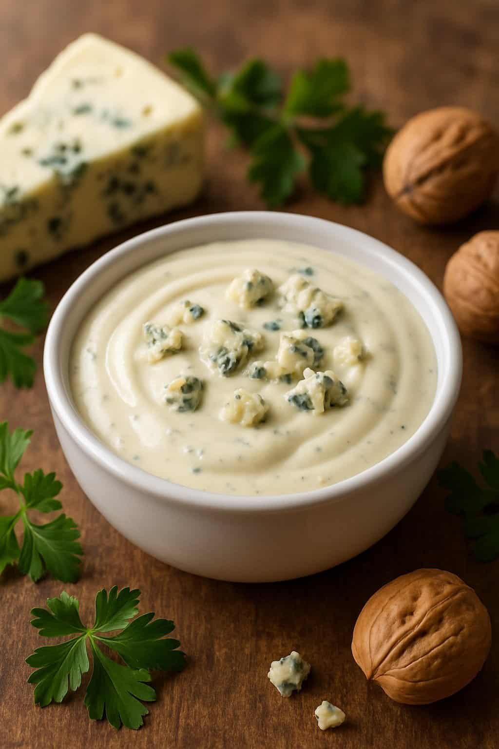 Blue cheese sauce brings a bold, creamy flavor that instantly elevates any meal. Whether poured over a steak, served as a dip for wings, or spread on a burger, it adds richness without being complicated.