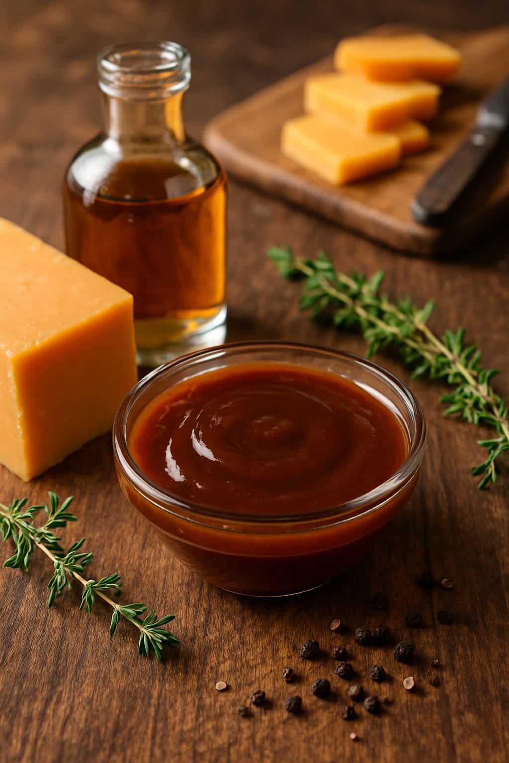 A rich, sweet, and smoky Cheddar’s Bourbon Glaze perfect for steaks, chicken, or salmon, made with bourbon, brown sugar, and savory spices.