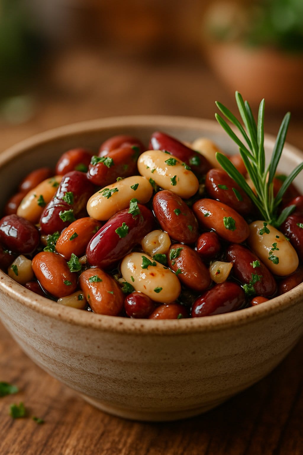 The beans soak up the marinade. Each bite tastes balanced with herbs, olive oil, and citrus.