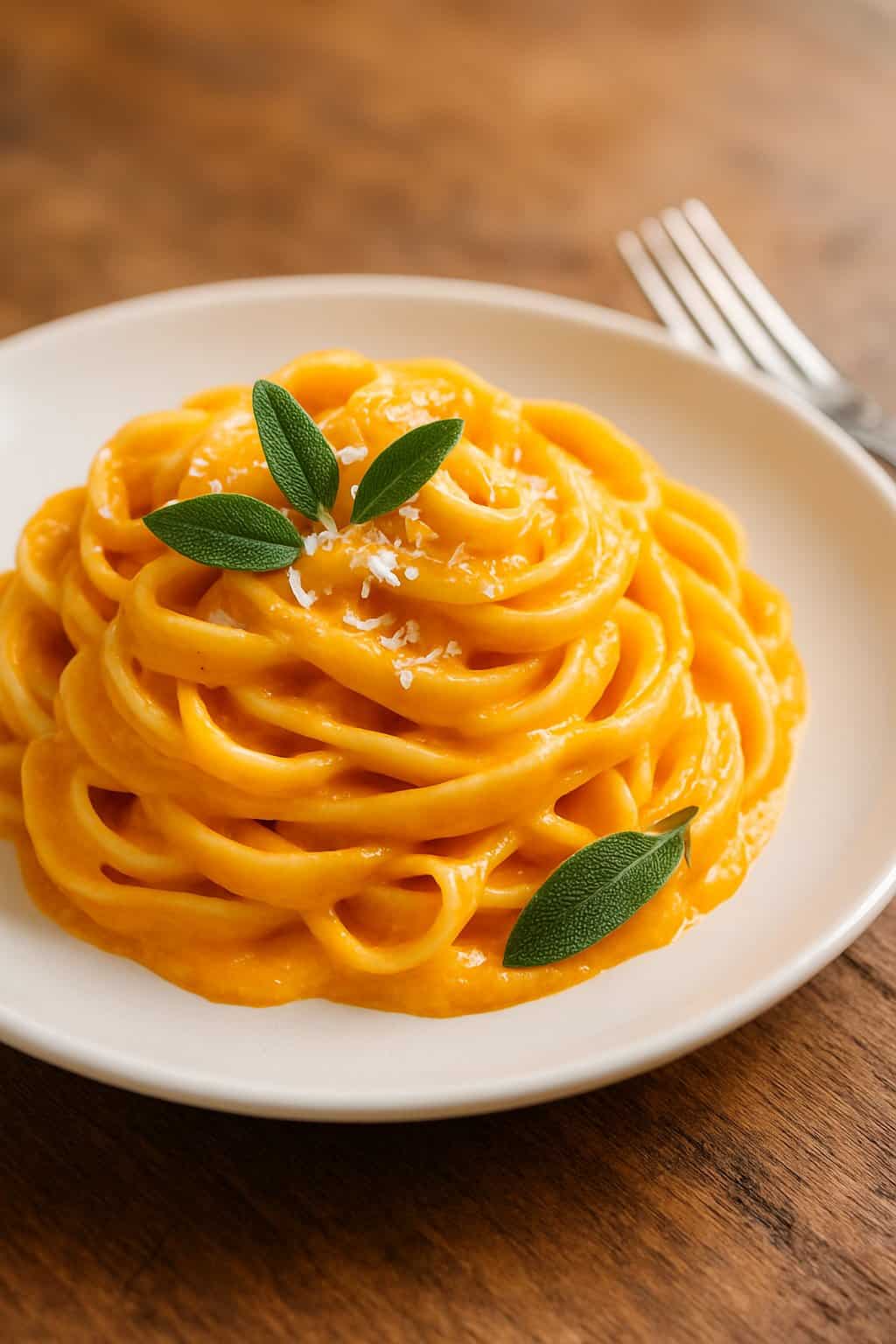 This Fettuccini with Creamy Butternut Squash Sauce is a rich, comforting pasta dish featuring velvety roasted squash purée, parmesan, and garlic for a luxurious, cozy meal.