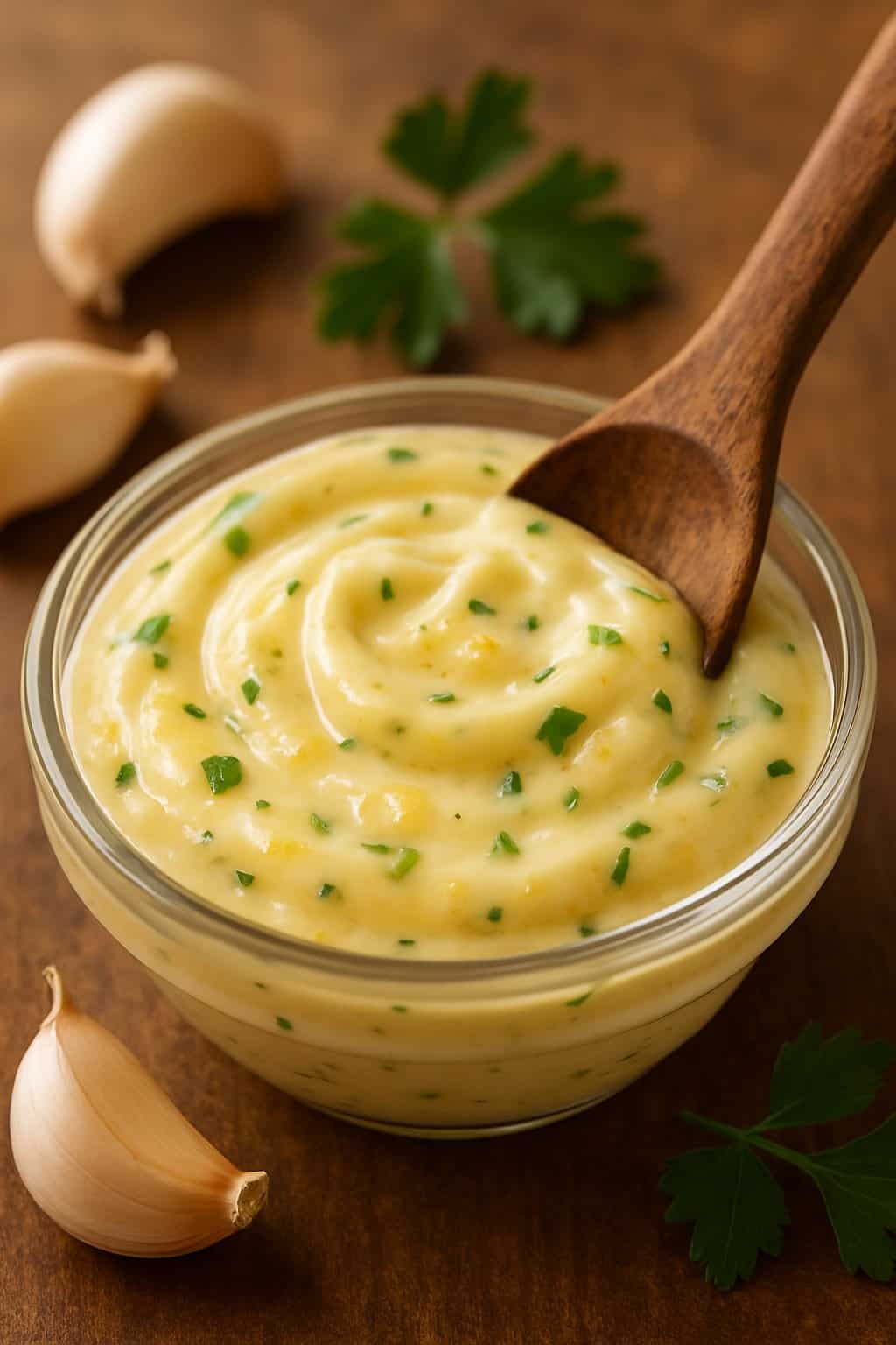 This sauce comes together quickly with a few basic ingredients and simple tools. Fresh garlic, butter, and herbs create the base, while lemon juice and spices add balance.