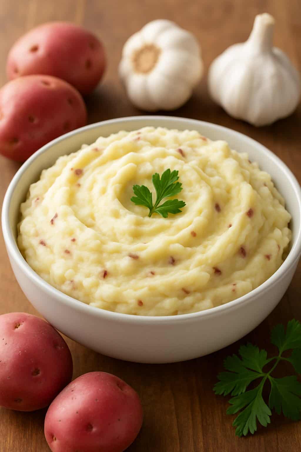 Start with fresh red potatoes, real garlic, and warm dairy. The right tools and a careful process keep the mash creamy and not gummy.