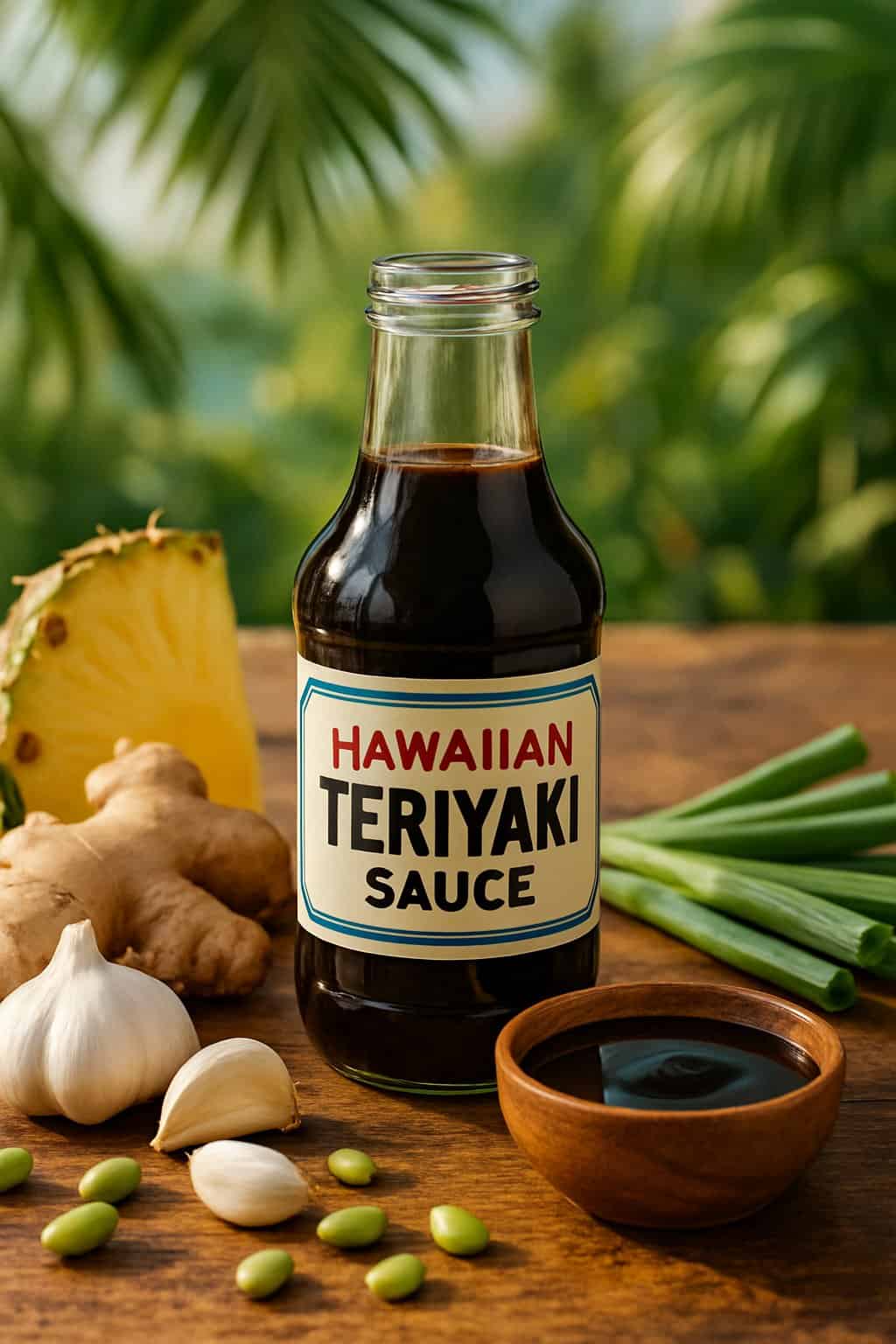 Hawaiian teriyaki sauce blends soy sauce, sugar, and ginger into a base that is both sweet and savory. Some cooks add pineapple juice for a tropical flavor that helps tenderize meat and balance the saltiness.