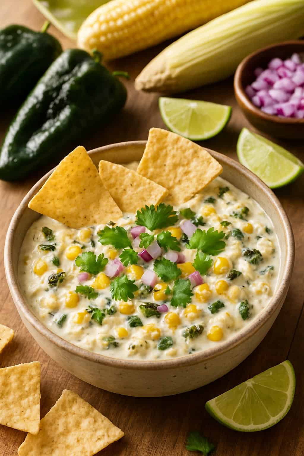 When you scoop up this roasted poblano corn dip, you get more than just flavor. The mix of corn, peppers, cheese, and cream creates a snack that’s rich but also balanced with some nutrients.