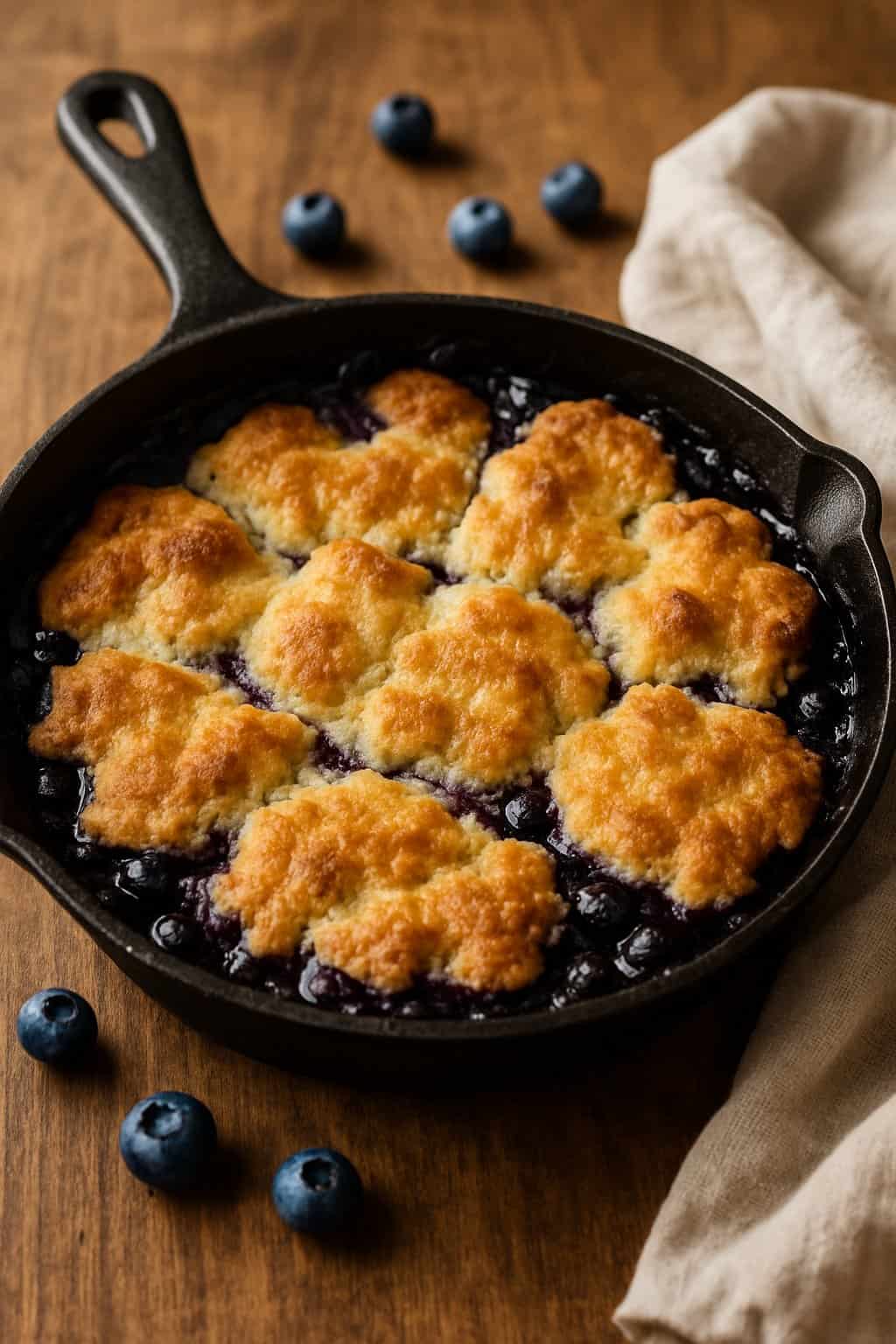 When summer hits and blueberries are everywhere, I crave a skillet cobbler baked till golden. I always reach for my cast iron skillet here—it gives the cobbler a crisp edge and keeps the inside soft and loaded with juicy berries.