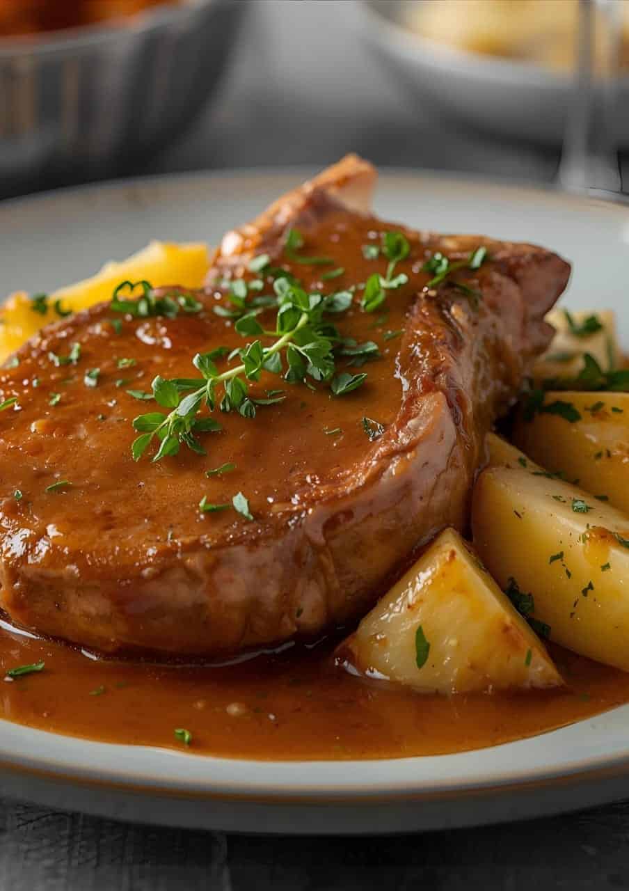 There’s something comforting about a plate of smothered pork chops with potatoes in gravy. This classic recipe brings together tender pork chops, hearty potatoes, and a flavorful homemade gravy.